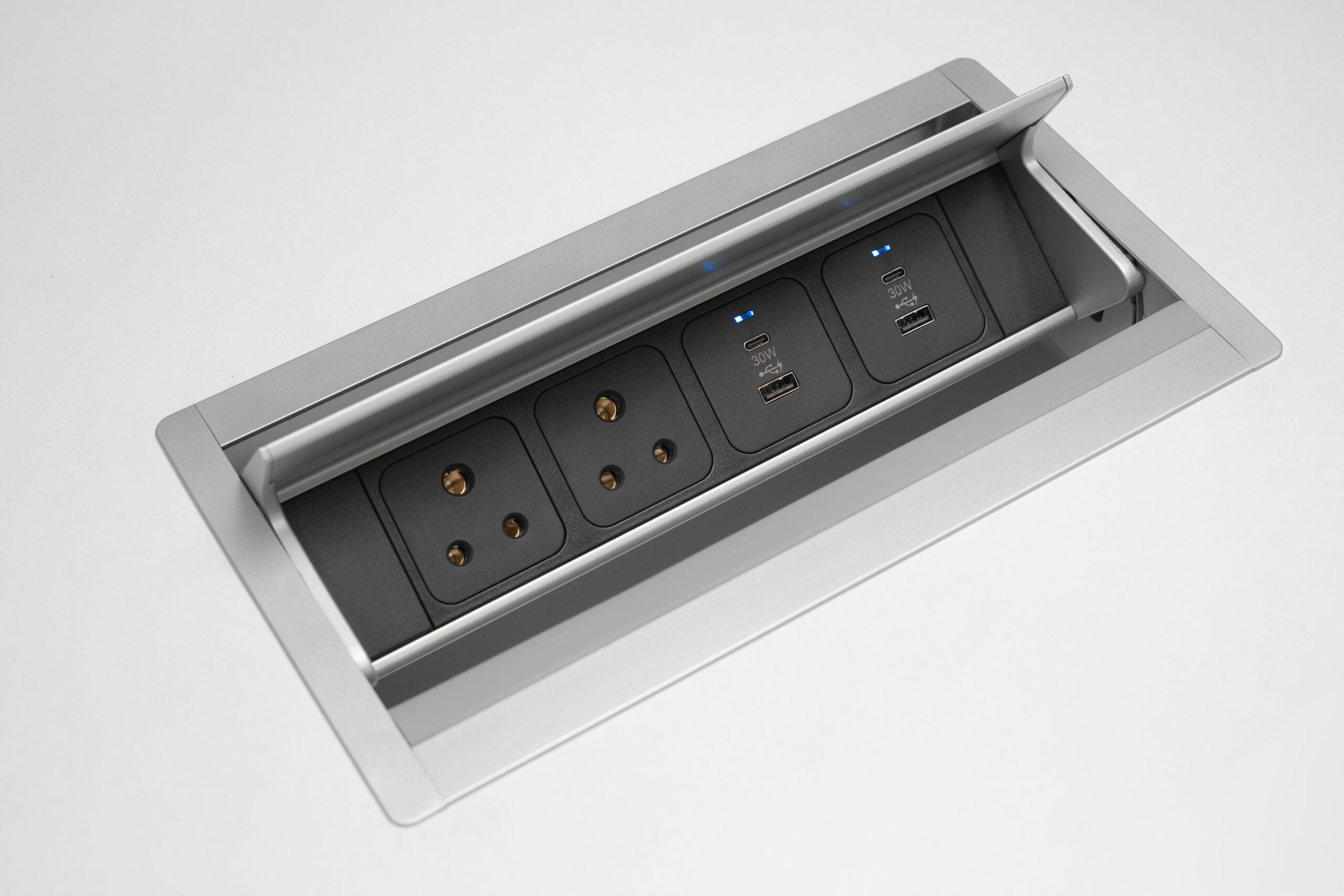 Compact and elegant, NETBOX Point is a Red Dot award-winning unit designed for seamless, secure connectivity in furniture.