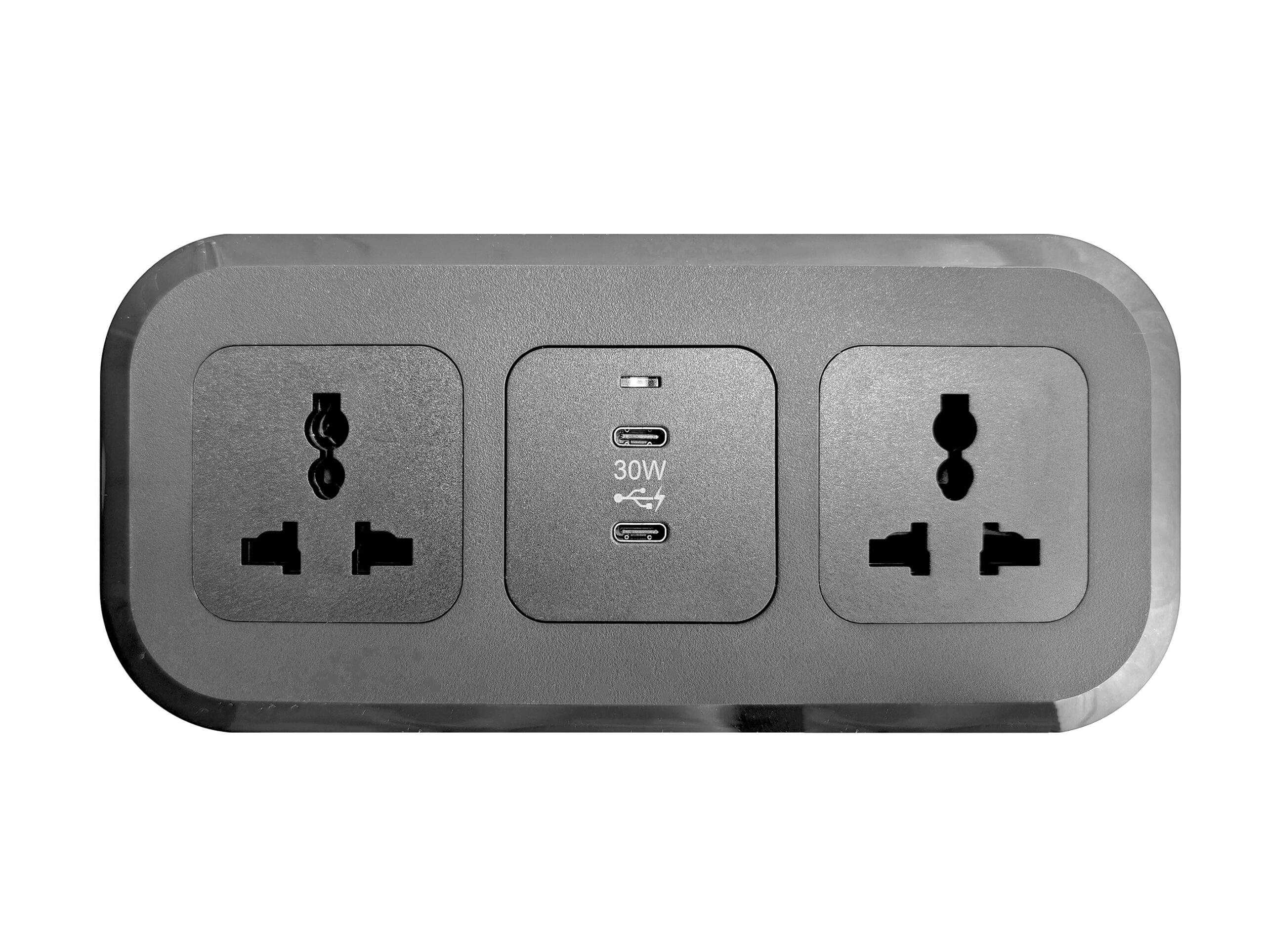 NETBOX Point Duplex is a built-in unit for installation in 120mm grommet. This unit features 2 power sockets alongside the flexibility of 2 multimedia modules, allowing you to tailor your connectivity experience to your choice. Ideal for round meeting tables, lounges, and workstations.