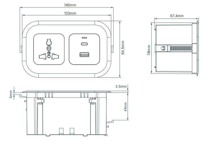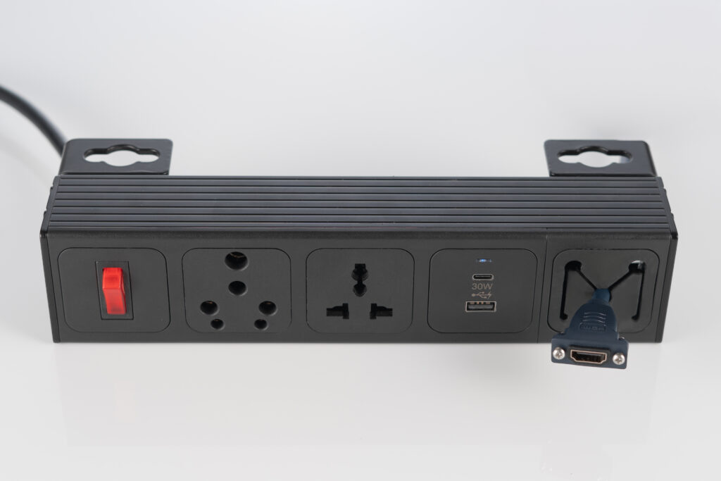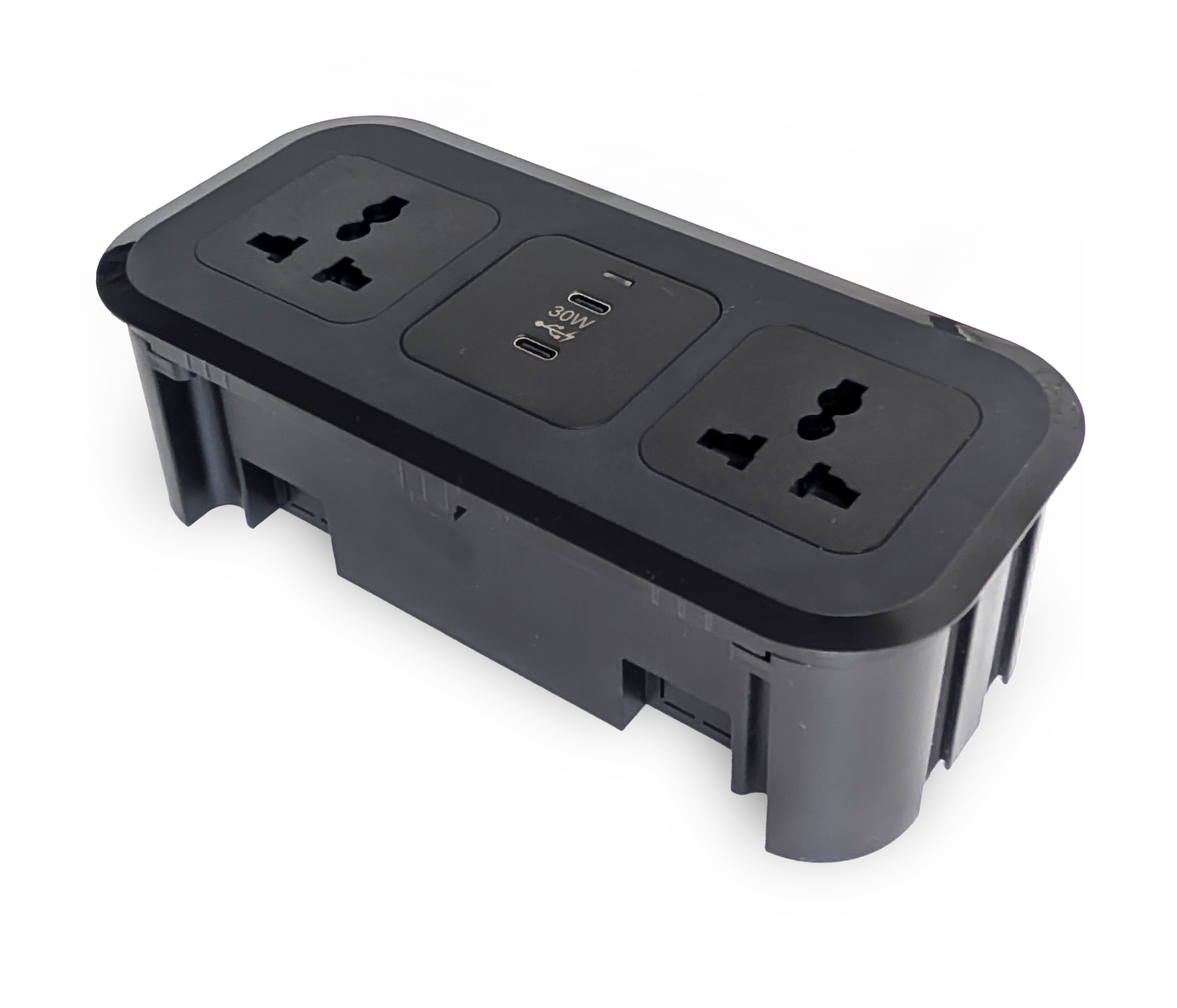 NETBOX Flush is a built-in unit with dual module of your choice. Designed to blend with any environment seamlessly, the NETBOX Flush sits flush with your workspace surface. It features a rounded edge and aesthetic contemporary look.