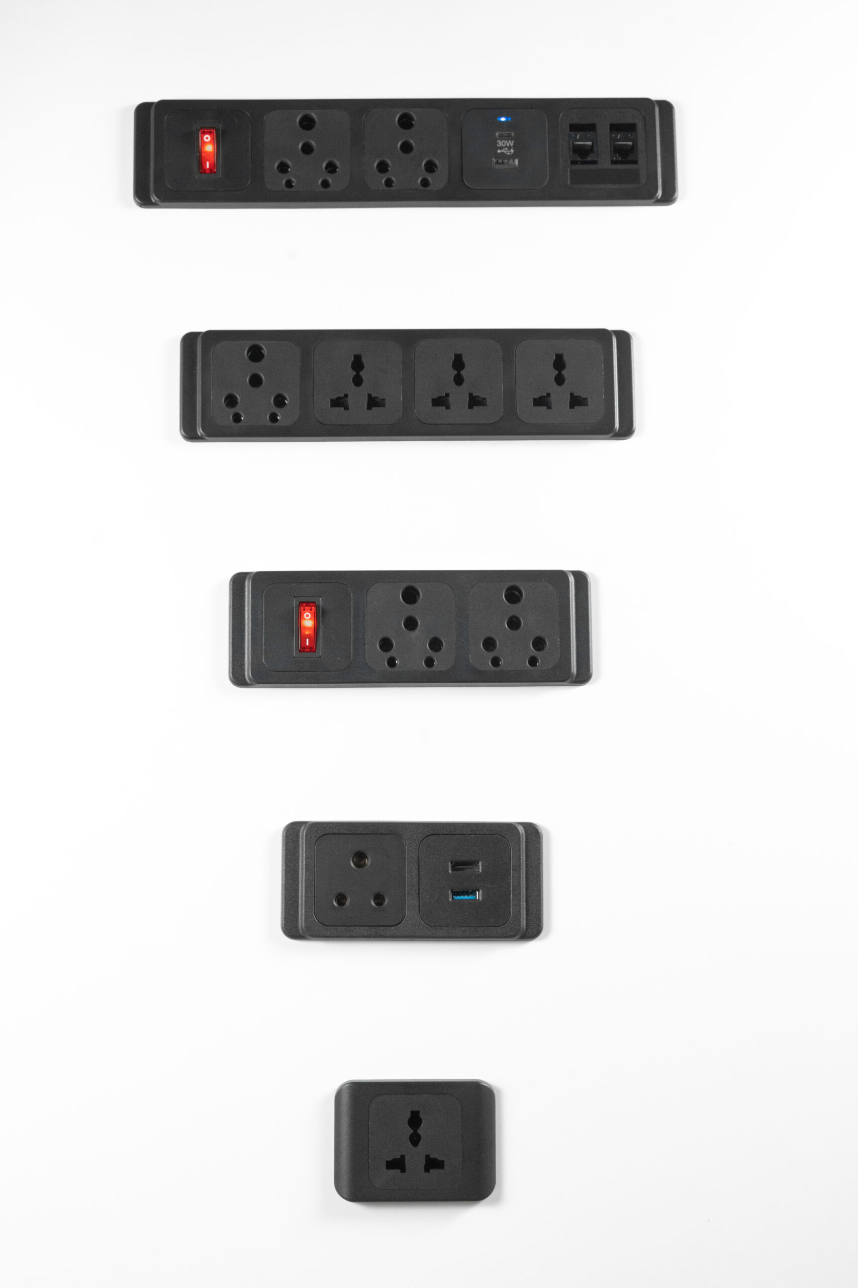 Netbox M ( M1, M2, M3, M4, M5) is a standard power, data and multimedia unit in plastic finish which comes fitted with detachable frame.