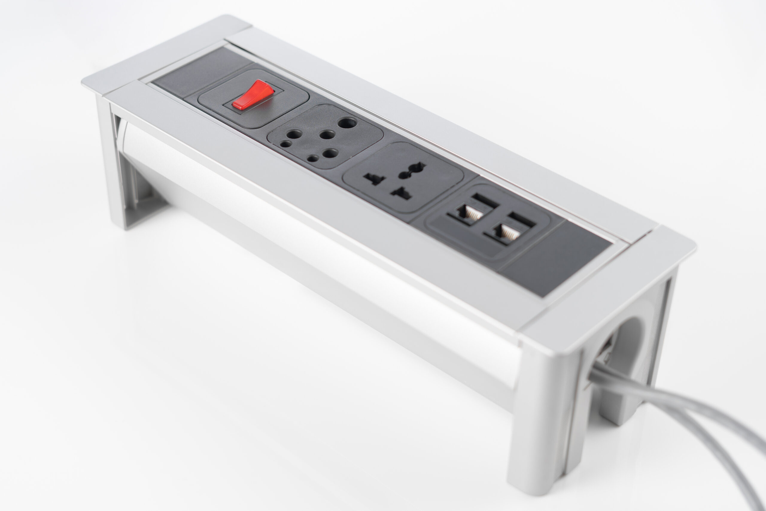 NETBOX Turn Comfort rotates at the press of a button—either to reveal or conceal the socket outlets.