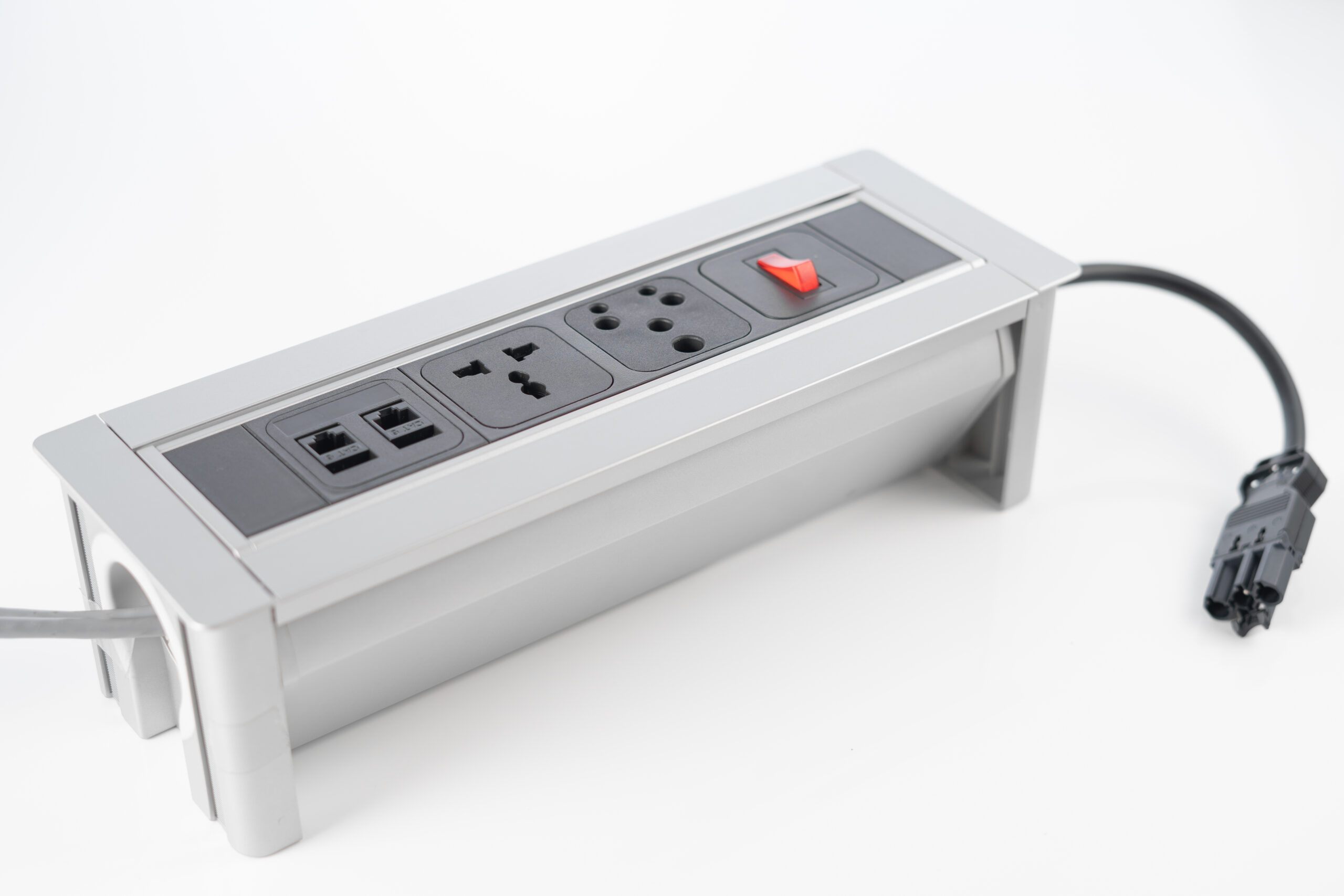 Easy to install and use, it can be securely mounted using Powerstrips or a table clamp, offering durable and efficient access to power and communication outlets.